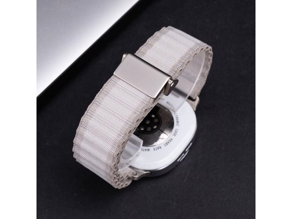 Objevte ideální spojení pohodlí, stylu a odolnosti s nylonovým řemínkem pro Samsung Galaxy Watch 8 / 8 Classic. Tento moderní sportovní pásek je vyroben z pevného a přitom příjemně měkkého nylonu, který skvěle odvádí vlhkost a je příjemný na dotek i při celodenním nošení. Kovová spona s rychlým zapínáním zaručuje jisté upevnění během sportu i běžného dne.