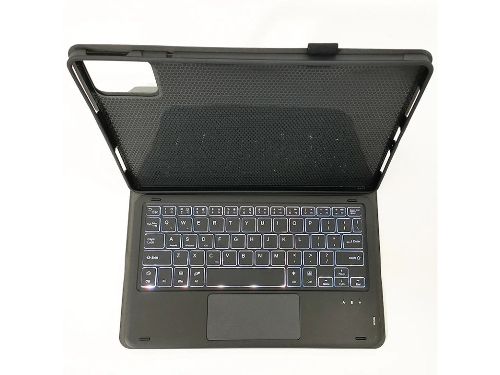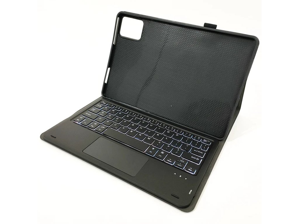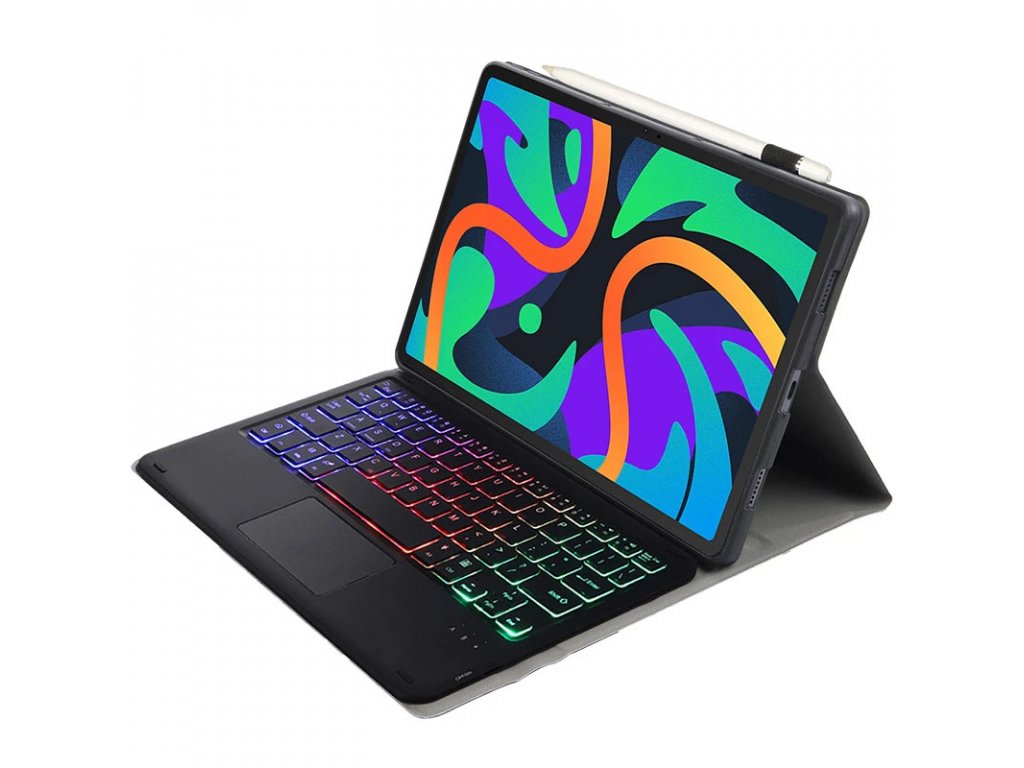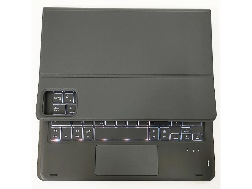 Obal je vyroben ze syntetické kůže, která je odolná proti opotřebení a snadno se čistí, zatímco silikonový vnitřní kryt pevně drží váš tablet na místě. Klávesnice, která se díky magnetům snadno připojuje a odpojuje, je vybavena českým rozložením kláves a podsvícením, což z ní činí skvělého pomocníka pro práci v různých světelných podmínkách.