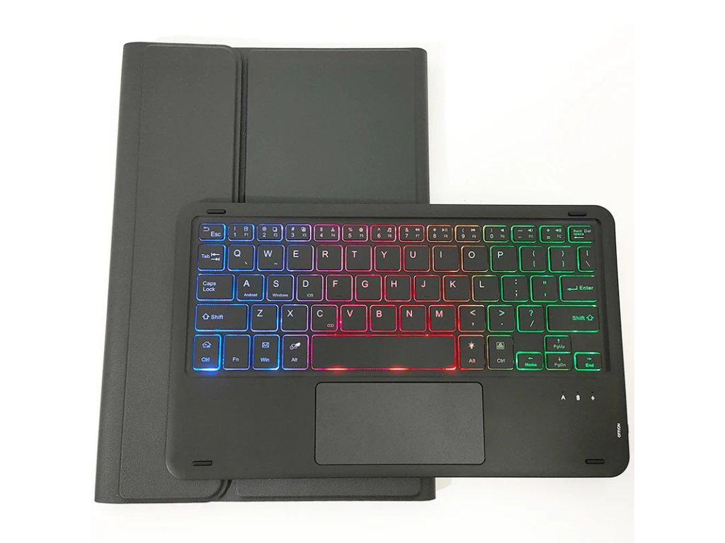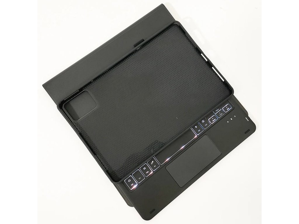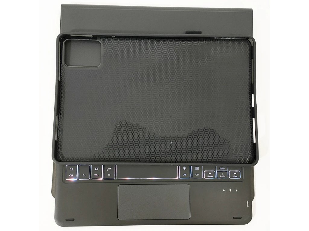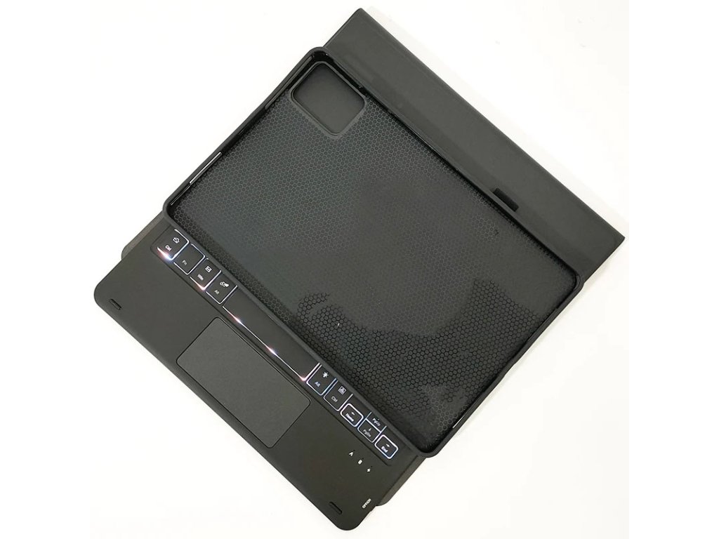 Obal je vyroben ze syntetické kůže, která je odolná proti opotřebení a snadno se čistí, zatímco silikonový vnitřní kryt pevně drží váš tablet na místě. Klávesnice, která se díky magnetům snadno připojuje a odpojuje, je vybavena českým rozložením kláves a podsvícením, což z ní činí skvělého pomocníka pro práci v různých světelných podmínkách.