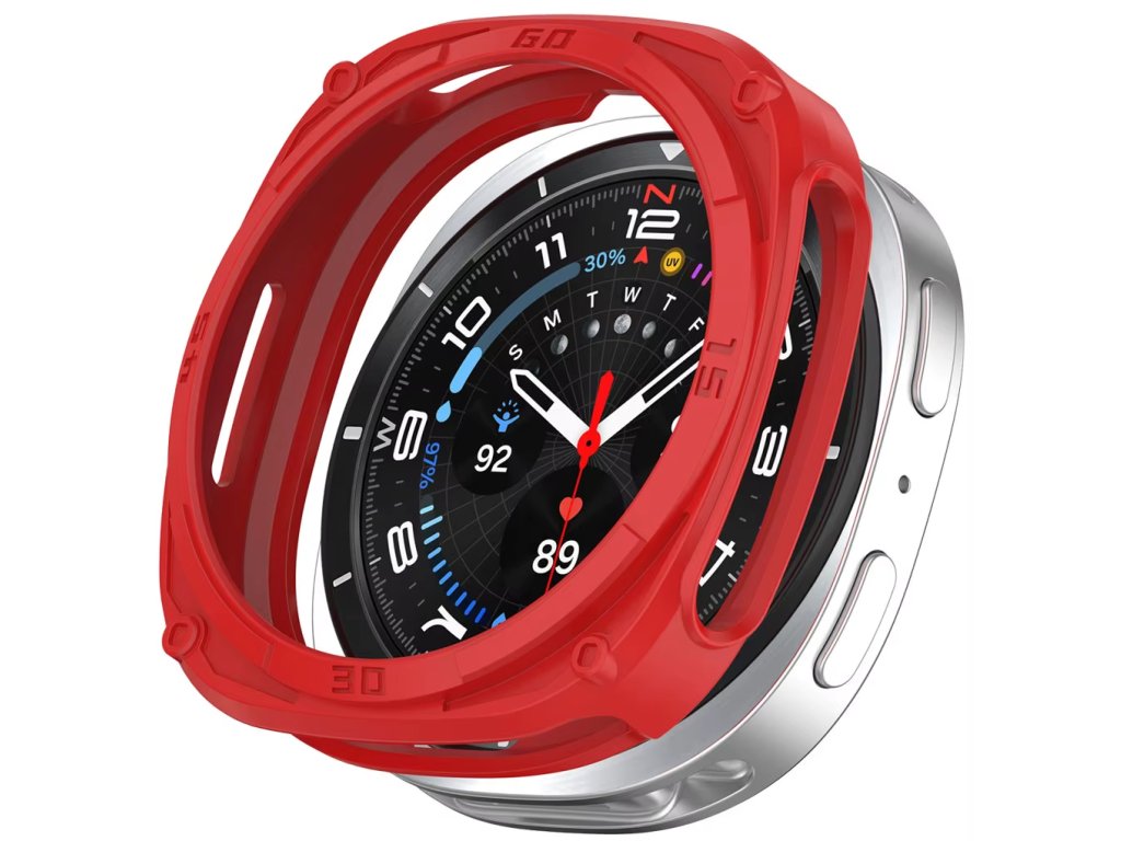 Kryt chrání okraje a rám, pro úplnou ochranu doporučujeme doplnit tvrzeným sklem pro Galaxy Watch 8.