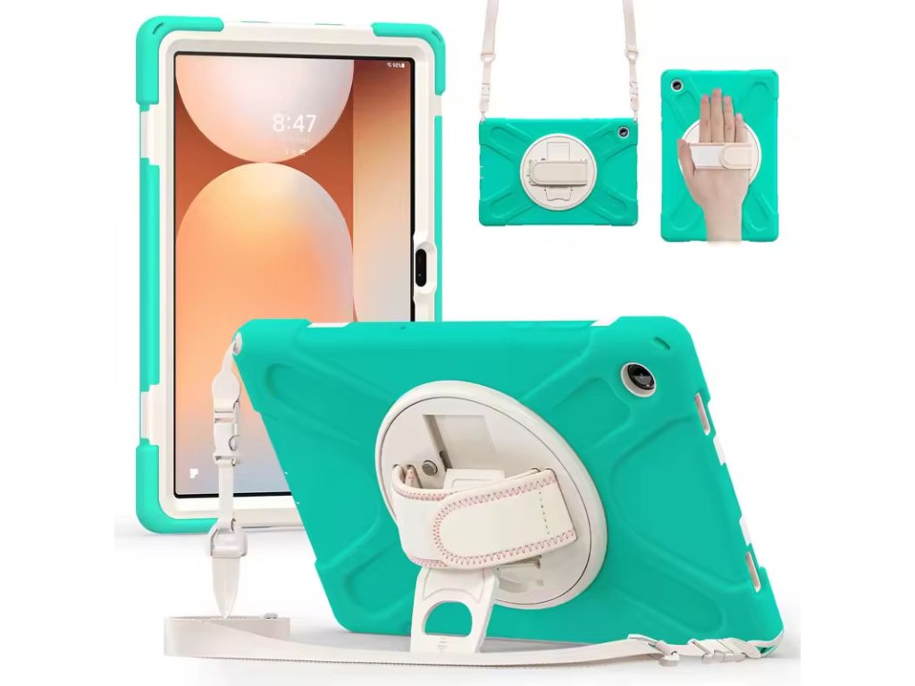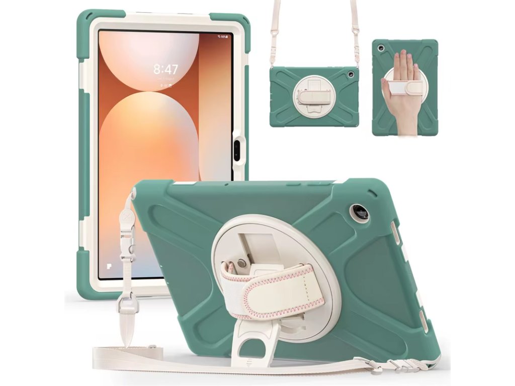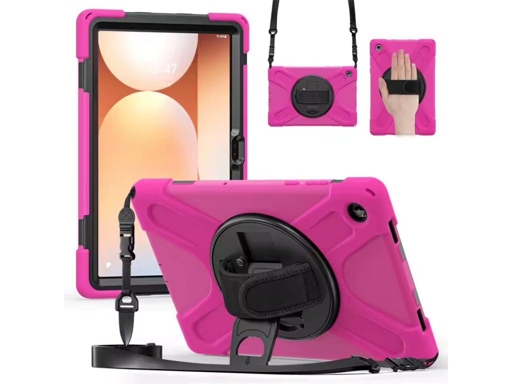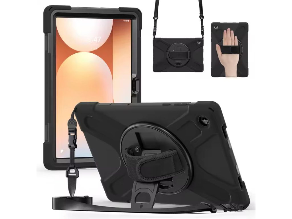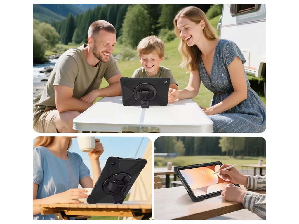 Extrémně odolný outdoorový obal pro Samsung Galaxy Tab A11+ (11") je navržen pro maximální ochranu v náročných podmínkách. Vícevrstvá konstrukce z pevného plastu a nárazuvzdorného silikonu chrání tablet proti pádům, nárazům, prachu i každodennímu hrubšímu zacházení. Součástí je otočný stojánek, zadní držadlo a ramenní popruh, díky kterým je tablet ideální pro děti, školu, auto, cestování i práci v terénu. Perfektní volba, když tablet potřebuje skutečnou ochranu – ne jen hezký obal.