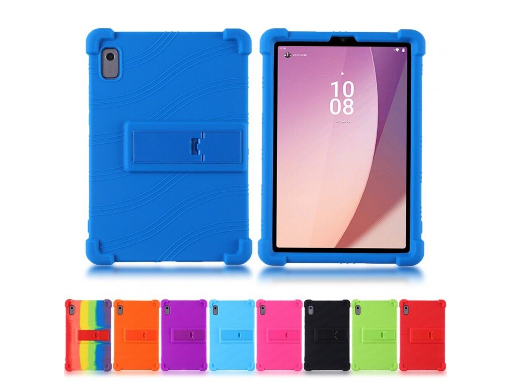 Jemný silikonový obal na tablet Lenovo tab M9 - barevné se stojánkem. Tablet se do pouzdra zasune a pevně drží. Tlačítka jsou překryty slabou vrstvou silikonového obalu, tak se prach ani vlhkost dovnitř nedostane a přitom jsou dobře ovladatelná. Obal je kompatibilní s verzí TB-310.